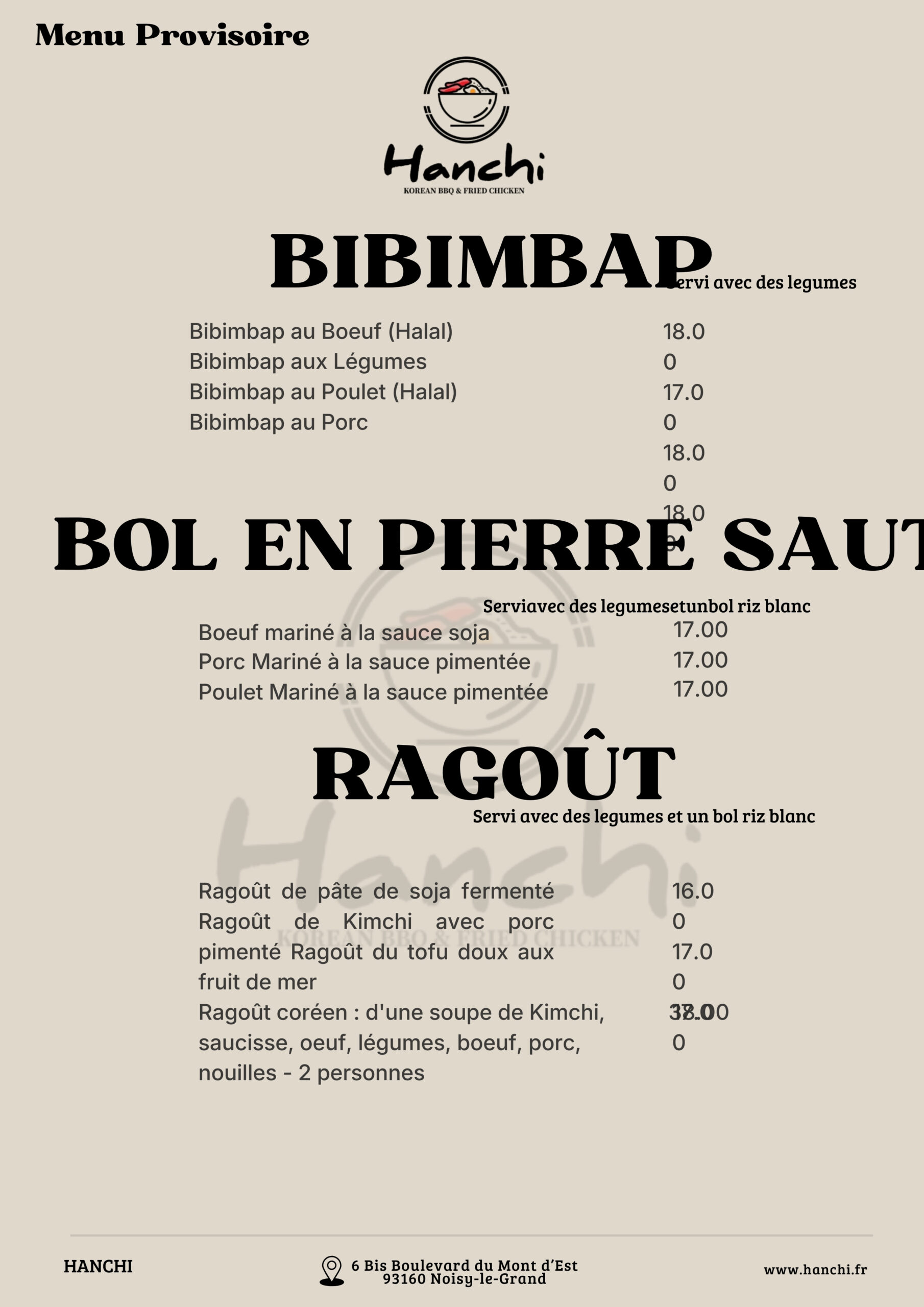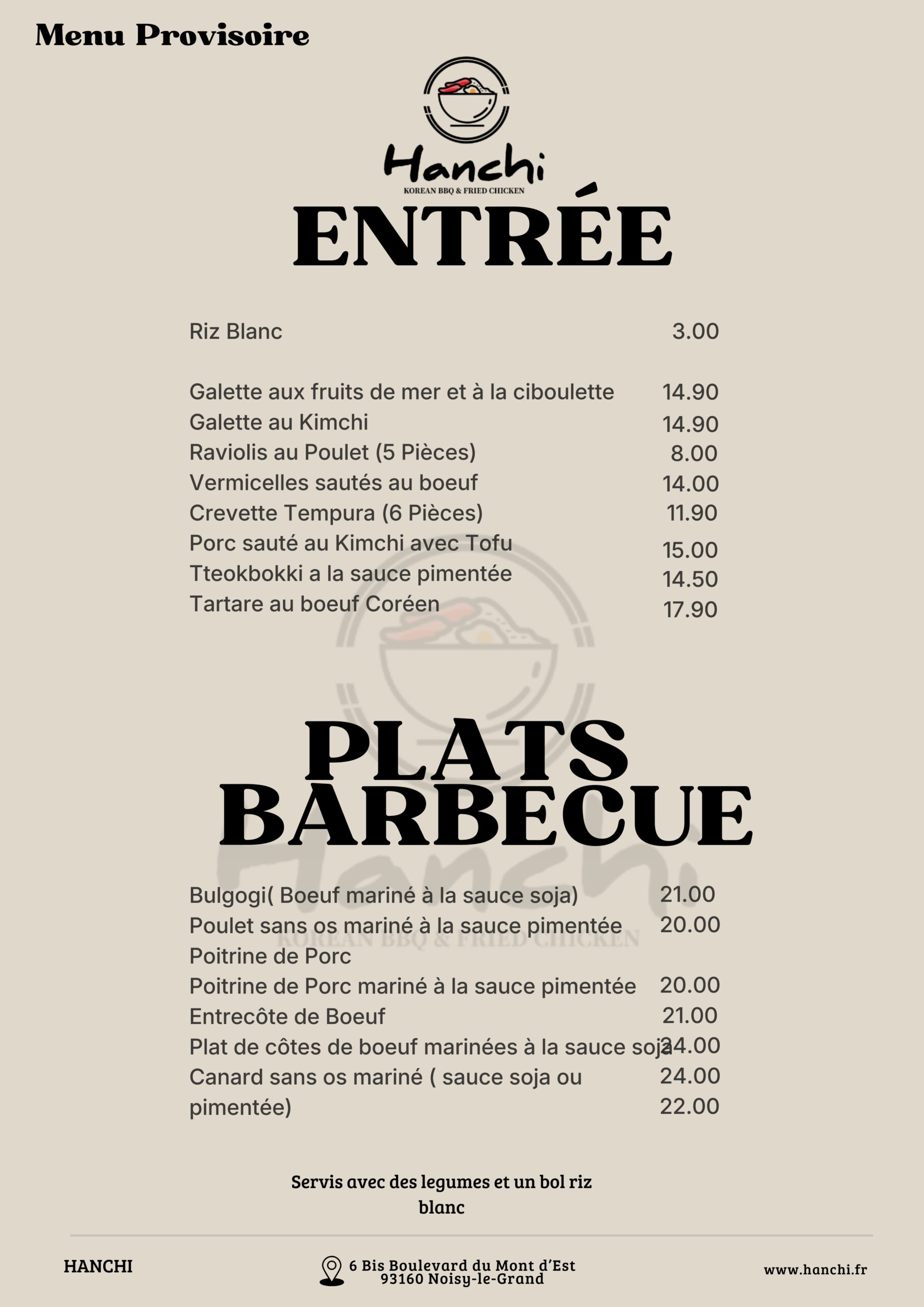 Korean BBQ and fried chickenDans une atmosphère conviviale, agréable et peu tapageuse vous pourrez découvrir des plats typiquement coréens.IngredientsPremium GradeWe use only the best ingredients from all over the world
